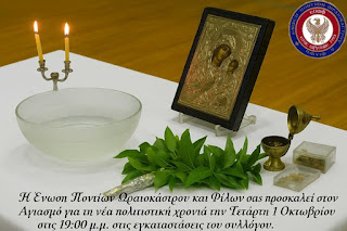 Η πρόεδρος και το Διοικητικό Συμβούλιο της «Ένωσης Ποντίων Ωραιοκάστρου και Φίλων» σας προσκαλούν να παρευρεθείτε στην τελετή Αγιασμού για την έναρξη της νέας πολιτιστικής χρονιάς που θα πραγματοποιηθεί στις εγκαταστάσεις του συλλόγου μας στο «Κονταξοπούλειο» αθλητικό κέντρο, την Τετάρτη 1 Οκτωβρίου και ώρα 19.00.