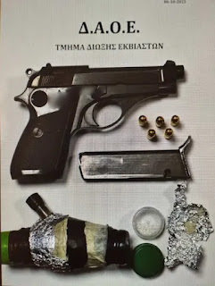Ειδικότερα, στο πλαίσιο ελέγχων που πραγματοποιούνταν από κλιμάκιο αστυνομικών του Τμήματος Δίωξης Εκβιαστών σε καταστήματα υγειονομικού ενδιαφέροντος στην ευρύτερη περιοχή της Αττικής, ο ανωτέρω εντοπίστηκε κατά την έξοδό του από νυχτερινό κέντρο διασκέδασης και σε σωματικό έλεγχο που ακολούθησε, βρέθηκαν στην κατοχή του και κατασχέθηκαν: